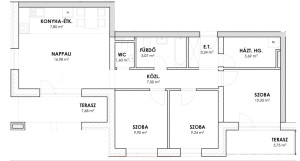 -3 hálószoba (egyik szobához is tartozik terasz)