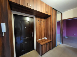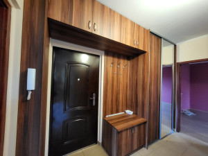 - Az előszobában egy nagy beépített szekrény (részben tolóajtós) van, sok pakolási lehetőséggel, cipőtárolóval és kabátakasztóval.