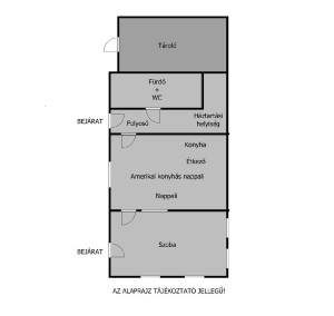 Egy kb. 52 m²-es élettér, amit saját ízlésed szerint alakíthatsz: világos szoba, modern konyha-étkező, fürdőszoba wc-vel, háztartási helyiség és két praktikus tároló, hogy mindig rend legyen.