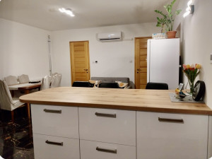 A ház éke a konyha,mely modern, igényesen kivitelezett. Beépített mosogatógép, sütő, főzőlap és szagelszívó lett a konyhabútorba beépítve. A háziasszonyok kedvence a konyhában található ablak, mely előtt nagy pult és a gránitmosogató is van.