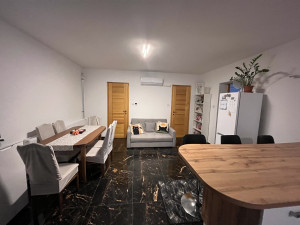 A házba belépve az amerikai konyhás nappaliba jutunk. A nappali járólapozott, mely alatt elektromos padlófűtés van, ezen kívül radiátoros hőleadó és hűtő-fűtő klíma is található.