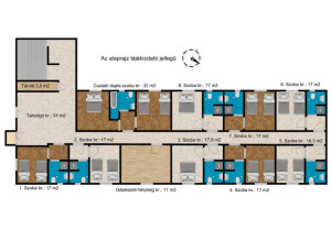 8 db kétágyas szoba fürdőszobával (légkondicionált), ebből: 6 db kétágyas, kettő franciaágyas