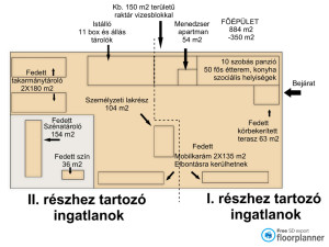 I. rész irányára: 285 MFt, mely a panzió, étterem, konyha, terasz, menedzser lakás és egy 150 m2-es raktárépületet tartalmaz, illetve az ehhez tartozó kb 3100 m2-es telekterületet. A főépülettel szemben található (egyik) 135 m2 területű fedett mobilkarám, mely szükség esetén bontható, vagy autóbeállók alakíthatók ki belőle.