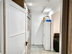 A lakásba egy ötponton záródó modern, biztonságos bejárati ajtón keresztül jutunk. Itt lett kialakítva egy hatalmas beépített gardróbszekrény, mely nem csak igényes és szép, de nagyon praktikus, hiszen rengeteg holmit elnyel.