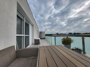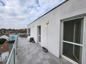 GYŐR–SZIGETBEN ELADÓ EGY PENTHOUSE JELLEGŰ, ÚJSZERŰ TÉGLALAKÁS – 27 NM-ES TERASSZAL!