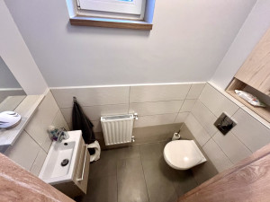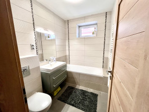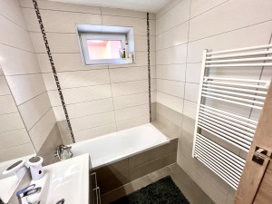 A fürdőszobában kádkialakítás van, illetve itt található az egyik wc is, emelett van egy különálló mosdó a bejáratnál.